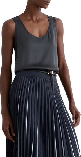 Stretch-enhanced silk fronts a scoop-neck jersey tank that you can wear alone or layer all-year round.