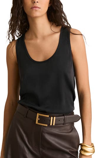 Stretch-enhanced silk fronts a scoop-neck jersey tank that you can wear alone or layer all-year round.