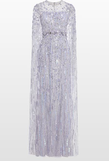 Jenny Packham Ruby Sequin-Embellished Cape Maxi Dress, Alternate, color, Cloud