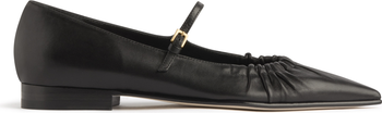A MODERN UPDATE TO THE CLASSIC POINT TOE MARY JANE FLAT, MADE OF THE FINEST ITALIAN NAPPA LEATHER. THE RUCHED LEATHER DETAIL AT THE VAMP CREATES THE PERFECT FIT & ADDS A CHIC NOD TO THE LATE 90'S / EARLY 00'S. A TRULY VERSATILE STYLE THAT LOOKS GREAT WITH PANTS, SKIRTS, JEANS, PRETTY MUCH EVERYTHING. SEE ALSO THE RICH BURGUNDY AND NEUTRAL BONE NAPPA LEATHER VERSIONS