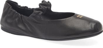 A specialty aged finish lends old-favorite status to this lambskin leather ballet flat designed with a ruched topline and mary jane strap.