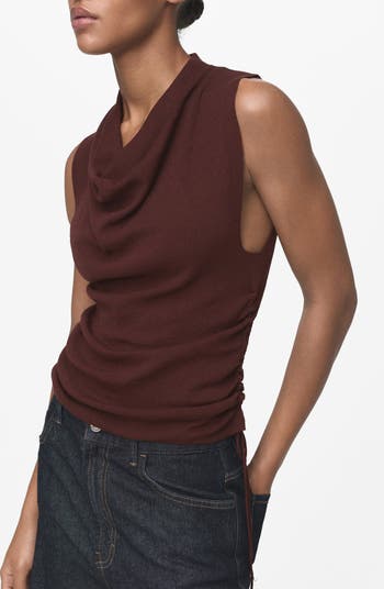 Rippled side ruching shapes the silhouette of this sleeveless knit top made with a drapey neckline.