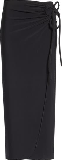 Secured with a ruched ring and ties at the side, this elegant jersey wrap skirt molds to your curves for the perfect fit.
