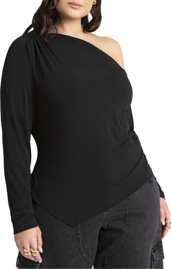 This shoulder-flaunting top is made from stretchy, soft jersey and ruched at the sides to create a chic draped effect.