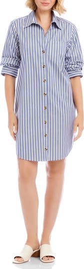 Ruched Sleeve Stripe Shirtdress