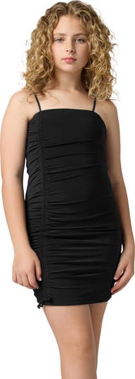 Ruched detailing brings visual texture to a sleeveless dress that's ideal for parties and special occasions.