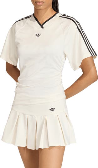 Shapely ruching one one side lends a contemporary '90s touch to this jacquard soccer jersey framed by raglan sleeves.