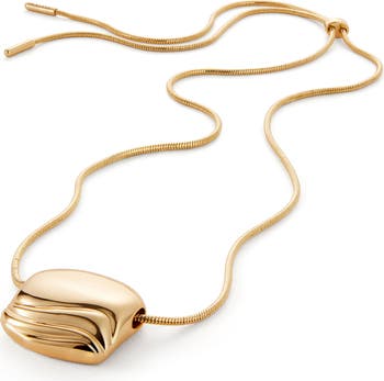 This chain necklace features a sculptural button pendant inspired by the rippled imprint water leaves behind in sand, giving it a sense of natural beauty.