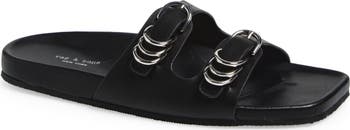 Polished buckle hardware highlights the twin straps of this lightweight and comfortable sandal that's sure to be a casual style favorite.