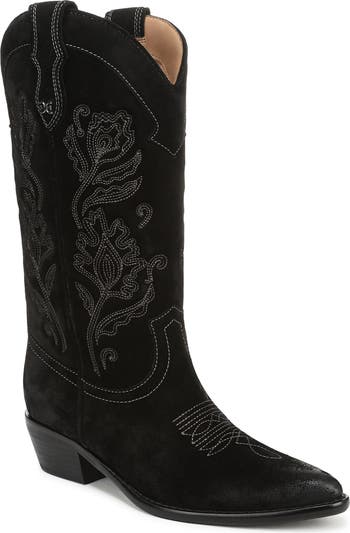 Bring a bit of Western attitude to your everyday style with this knee-high boot covered in intricate stitching.