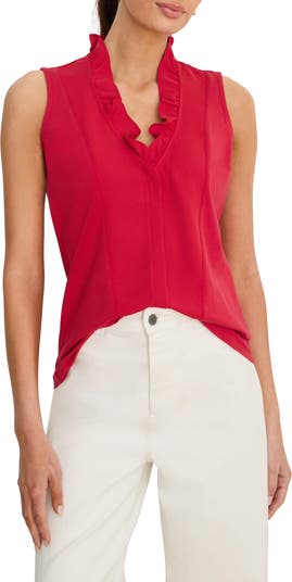 Frothy ruffles trim the neckline of this cotton-blend tank that layers beautifully into any outfit, while also looking stunning on its own.
