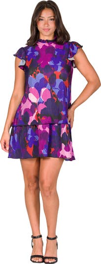 Ruffle Cap Sleeve High Neck Tiered Mini Dress