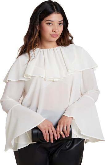 Float through the day in this sheer georgette crewneck top, which features a ruffled collar and flounced cuffs that move beautifully with you.