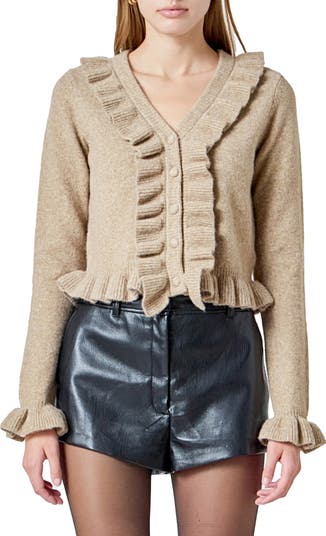 This wool-kissed cardi is supersweet with its ruffled trim and slightly cropped hem.