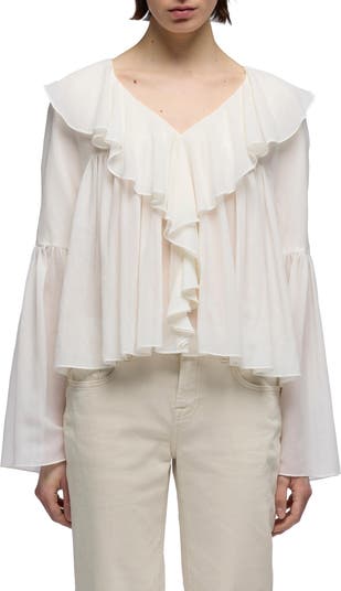 Ruffle Detail Flowy Cotton & Silk Top