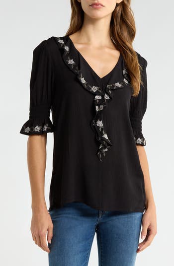 Ruffle Embroidered Top