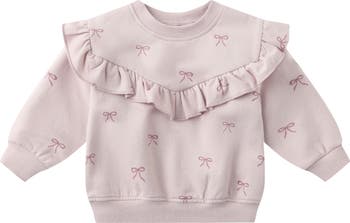 Ruffle trim and a dainty bow pattern make this sweatshirt a cute and cozy favorite for your little one.