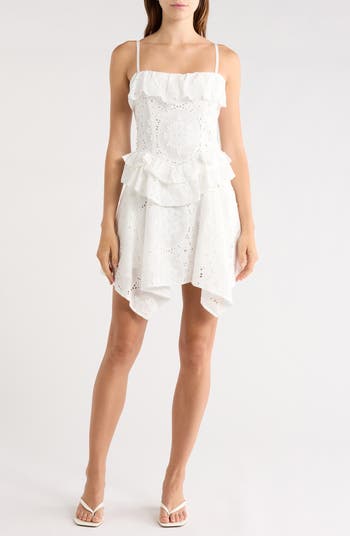 Ruffle Handkerchief Hem Cotton Broderie Anglaise Sundress