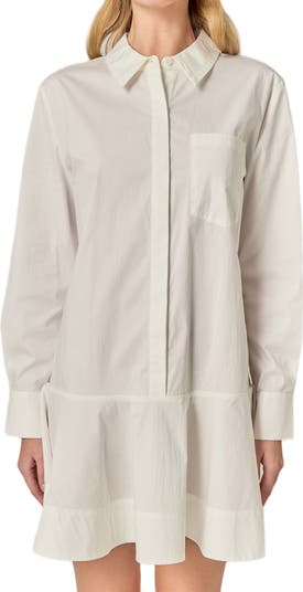 Ruffle Hem Long Sleeve Mini Shirtdress