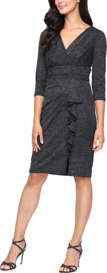 Ruffle Metallic Knit Cocktail Dress
