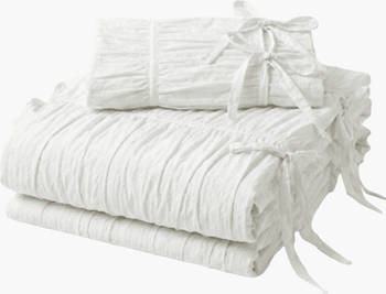 Inspired by cottagecore and soft romantic aesthetics, the Ruffle Ribbon Ties Duvet Cover brings romantic charm and refined comfort to your bedroom. Designed to evoke the opening pages of a romance novel, this duvet cover features delicate ruffle details and ribbon tie accents that add dimension and visual softness.