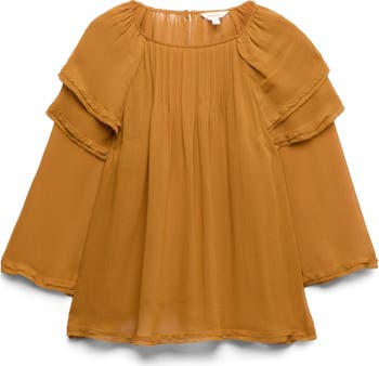 Dreamy and lightweight, this ruffle-frilled top is made from silky semi-sheer fabric and detailed with neat pintucks at the neckline.