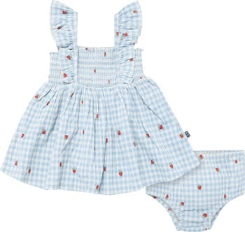 Your baby girl will be all set for summer fun in this sleeveless dress and diaper cover set! Designed with a smocked bodice for a comfy, flexible fit, the crinkle jersey fabric is soft, lightweight, and easy to care for—perfect for busy little ones. The ruffled shoulder straps give it an extra dose of charm, while the slight stretch ensures comfortable wear all day long. Whether it’s for playtime or a special outing, this set is a summer must-have! Our essentials have been independently certified with STANDARD 100 by OEKO-TEX® so that you don’t have to worry about harmful substances in your baby’s wardrobe. Pack includes one dress and a diaper cover.