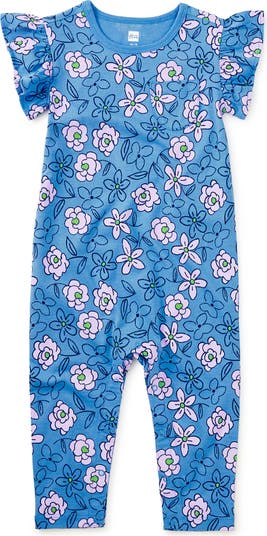 An easy, all-in-one favorite with sweet details throughout. This full-length romper features an artist-designed floral print and soft ruffle sleeves, finished with a front patch pocket for extra charm. Crafted from soft 100% cotton jersey, it's designed with snaps at the inseam for quick diaper changes and a comfortable fit that moves with baby from playtime to nap time. Made to be worn often, washed well, and loved long enough to be passed along. Perfect for matching moments with siblings.