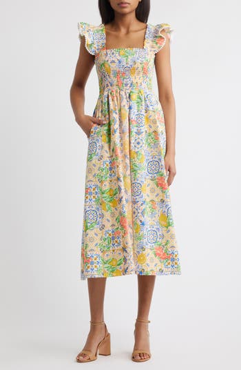 A smocked bodice ensures a comfortable fit for this ruffled sundress, crafted from breathable cotton for a light and airy feel.