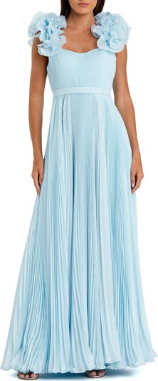 Blue pleated organza gown