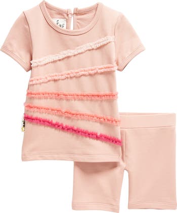 Little ones will look cute as can be in this darling set featuring dainty ruffle details from light to dark pink.