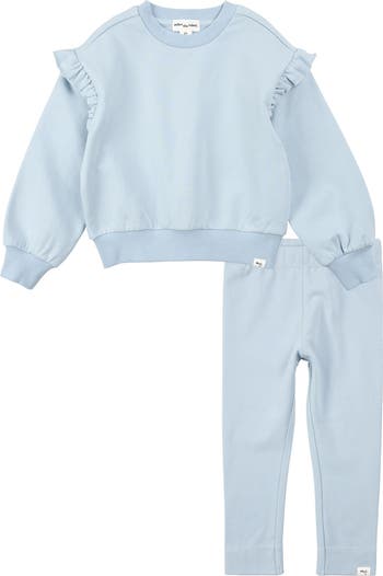 Brighten baby's day with this comfy set, including a ruffle-sweetened fleece sweatshirt and coordinating jersey leggings with a stretchy waistband for fuss-free changes.