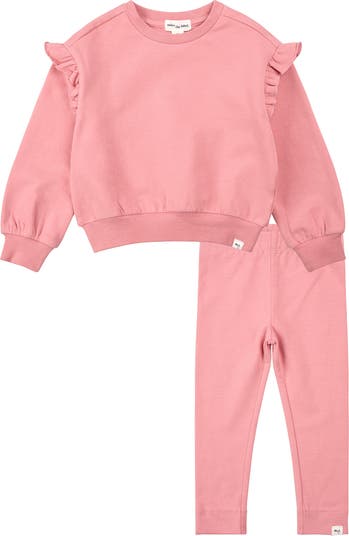 MILES THE LABEL Ruffle Sweatshirt & Leggings Set, Main, color, Dusty Pink