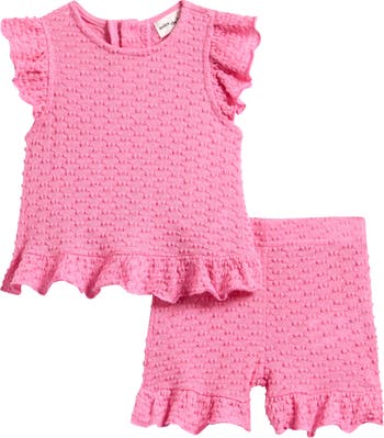 Your tiny trendsetter is ready to make an entrance in this puckery organic-cotton-blend set featuring a ruffled top and matching shorts.