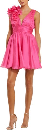 Embrace charm in this playful chiffon mini dress with shoulder ruffles, a v-neckline, and a flattering fit & flare design. Perfect for any occasion.