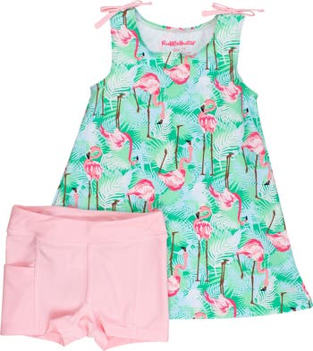 Active A-Line Bow Dress & Bike Short Set is the perfect blend of style and functionality for your little girl's wardrobe. This two-piece set features a vibrant A-line dress adorned with a playful print and a charming bow detail, matched with color-coordinated bike shorts that boast a comfortable elastic waistband. Ideal for active girls, the stretch fabric allows for freedom of movement, making it perfect for playtime or any outdoor activity. The set is crafted from breathable plain knit fabric, ensuring your child stays cool and comfortable even on warm days. With UPF 50+ sun protection, this dress and bike short combo is not just stylish but also provides essential protection from the sun's harmful rays. Whether it's a casual day out or a more spirited adventure, this girls summer dress set is designed to keep up with her energy and vibrancy. Explore more from our collection of colorful girls activewear, designed to keep her comfortable while looking great.