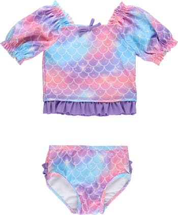 Puff Sleeve Ruffle Tankini 2-Piece Swimsuit is the perfect blend of style and functionality for girls. This tankini swimsuit features charming puff sleeves and delightful ruffles that add a playful touch to the pattern. The 2-piece swimsuit for girls is designed with a bow detail and signature rear ruffles that enhance its adorable look. Ideal for active days at the beach or pool, it offers full seat coverage and is crafted with 4-way stretch fabric that resists pilling and snagging, enhancing durability. Plus, it includes UPF 50+ sun protection to keep your little one safe from harmful rays. Dive into summer with this stylish and protective ruffle tankini swimsuit from our swim collection.