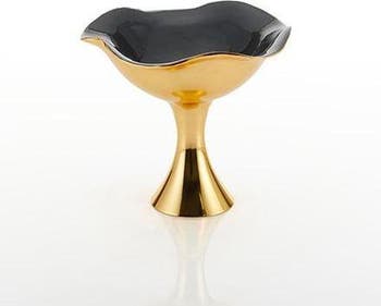 Skilled craftsmen hand apply a food safe enamel on the gold metal surface, giving it the fragile and delicate beauty of porcelain but it will never break. The gold candy dish is ideal for serving candy, sweets, nuts, olives, and fruit. Each of our creations is designed in our San Francisco studio. Master craftsmen using centuries old technique of sand casting create the original mould and skilled artisans hand create every piece, with pride, in our family owned factory. |Size: 8" L; 7.25" H; 8" W |Finish: Goldplate, Graphite |Material : Aluminum and Enamel |Use and Care Given its handmade and hand-finished nature, variations in the piece are to be expected and celebrated. |No two pieces are exactly alike.
