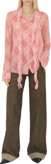 A blouse made in Italy from silk printed with the Burberry Check. The design is cut to a regular fit and features a ruffled scarf collar.||Button closure|Single-button cuffs|Straight hem