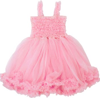 Signature ruffles cover the stretchy, sleeveless silhouette of a flouncy petticoat dress complete with a smocked bodice for the perfect fit.
