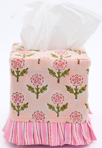 Ruffled Tissue Box Cover in Mona Pink Blockprint