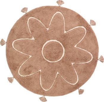 Your desires for pretty round rugs for the baby's room have been heard! Our Yva in a soft pinkish brown and finished with our traditional pompoms, it will enhance the decor of your little love's room. Its delicate pattern will go perfectly with the rest of the baby furniture. Finally baby sometimes drops things, makes stains, it's normal and it doesn't matter because Yva is machine washable and very easy to maintain! © Nattiot - registered design