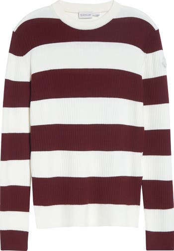 Rugby-inspired stripes bring sporty appeal to this season-spanning sweater rib-knit from virgin wool yarns and finished with a tonal leather logo patch.