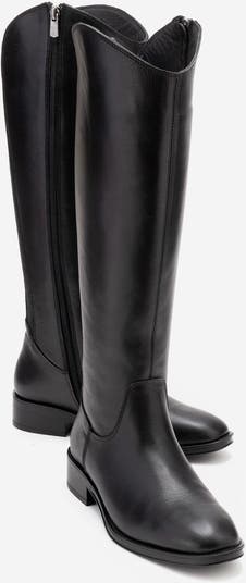 A versatile calf-length boot with stretch detailing for a comfortable, tailored fit