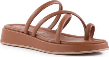 Slim straps and a toe-loop detail enhance the airy style of a sandal set on a sleek wedge heel.