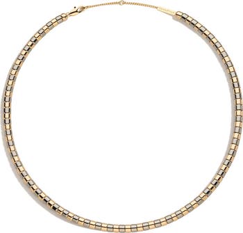 Two-tone beads create a gleaming pattern on this sleek necklace that wows on its own or in a layered style.