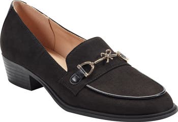 Lustrous bit hardware highlights the loafer-inspired topline of a streamlined pump lifted by a modest block heel for walkable height.