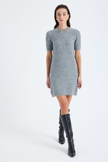 Rune Short Sleeve Knit Dress: a refined, contemporary piece crafted for effortless elegance, featuring premium 43-polyester-39-acrylic-9-polyamide-5-wool-4-elas