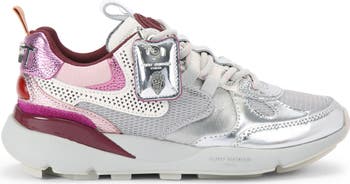 Opulent logo hardware and mixed-media overlays enhance the depth and dimension of a sporty sneaker grounded by a chunky platform and durable lug sole.