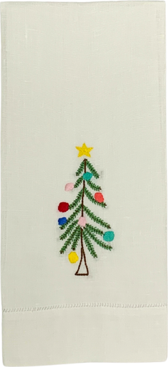 Our popular hand towels are made up of unique, hand embroidered designs on 100% linen fabric. The intricate detail makes our hand towels the perfect housewarming gift or addition to any kitchen or bathroom. Each decorative hand towel is hand crafted from start to finish by women in rural Haiti. Your favorite tea towels now in festive holiday designs. Whether you are decorating your table for guests or giving a meaningful gift, our Christmas hand towels are just what you have been looking for.